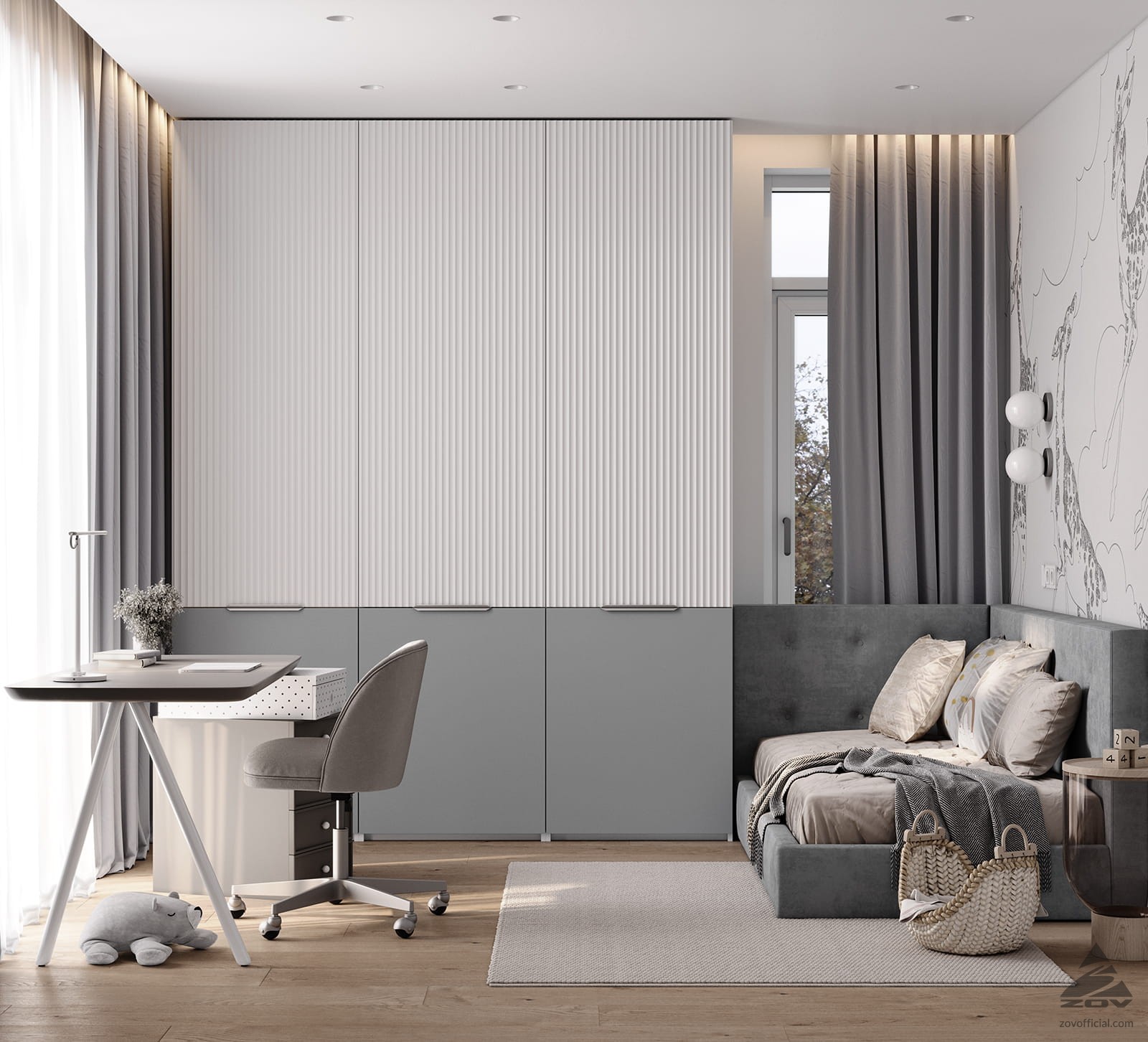 Флавио (крашеная МДФ), цвет NCS S 1000-N Глянец / «Система» (крашеная МДФ), цвет NCS S 3010-B10G Матовый