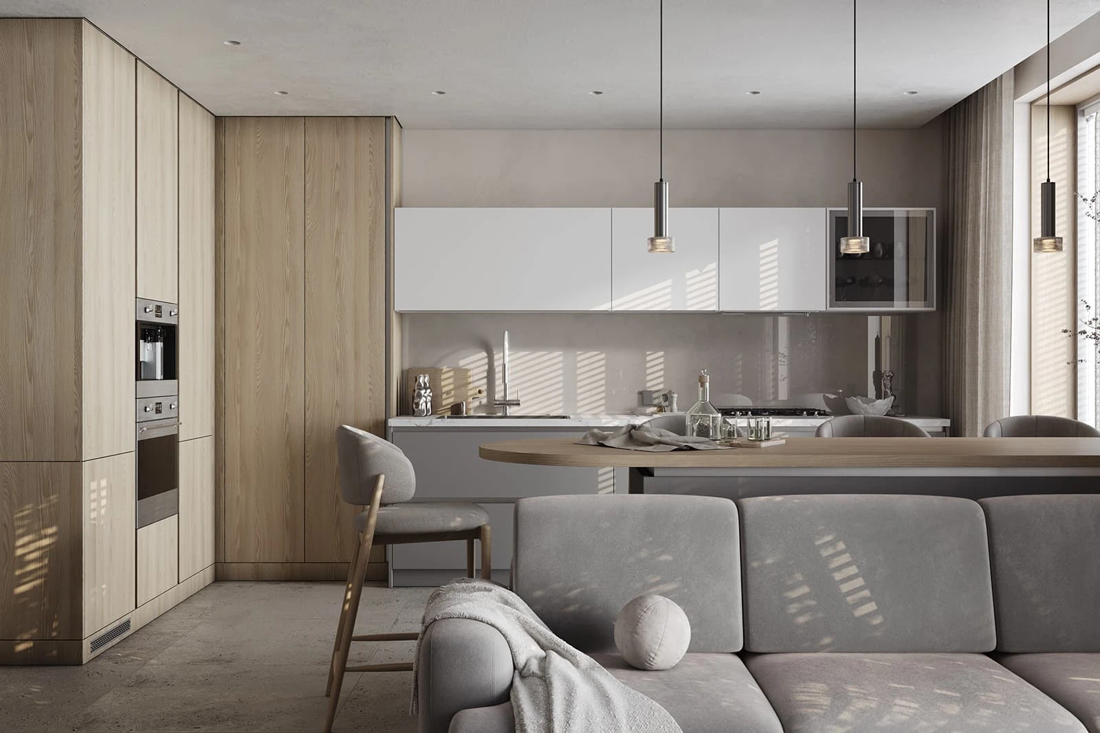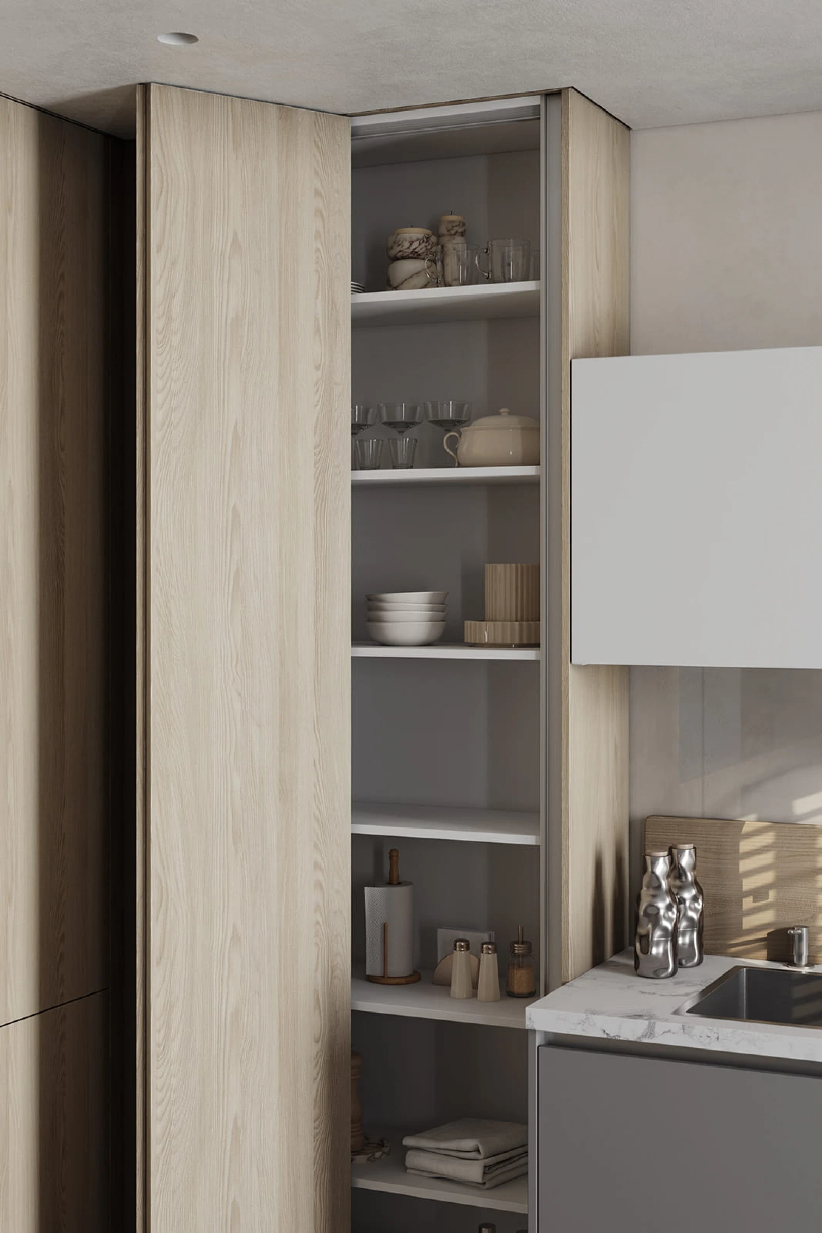 ЛМДФ Тимбер, декор Ясень Наварра / пластик HPL Möbius Soft Touch, цвет Бьянко Фредо / Бартоло,