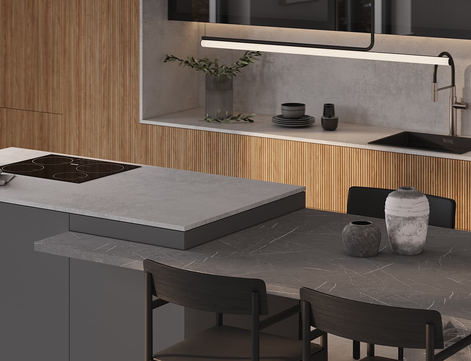 T434 Шпон дуба, цвет #111 / акрил Fenix NTM, цвет Серо-синий NTM (0724),