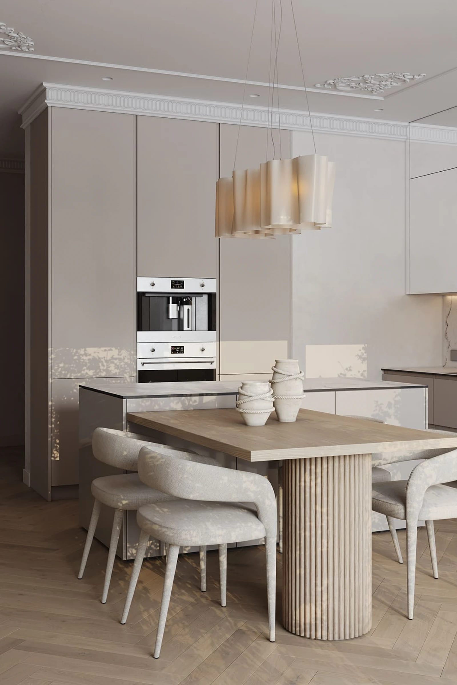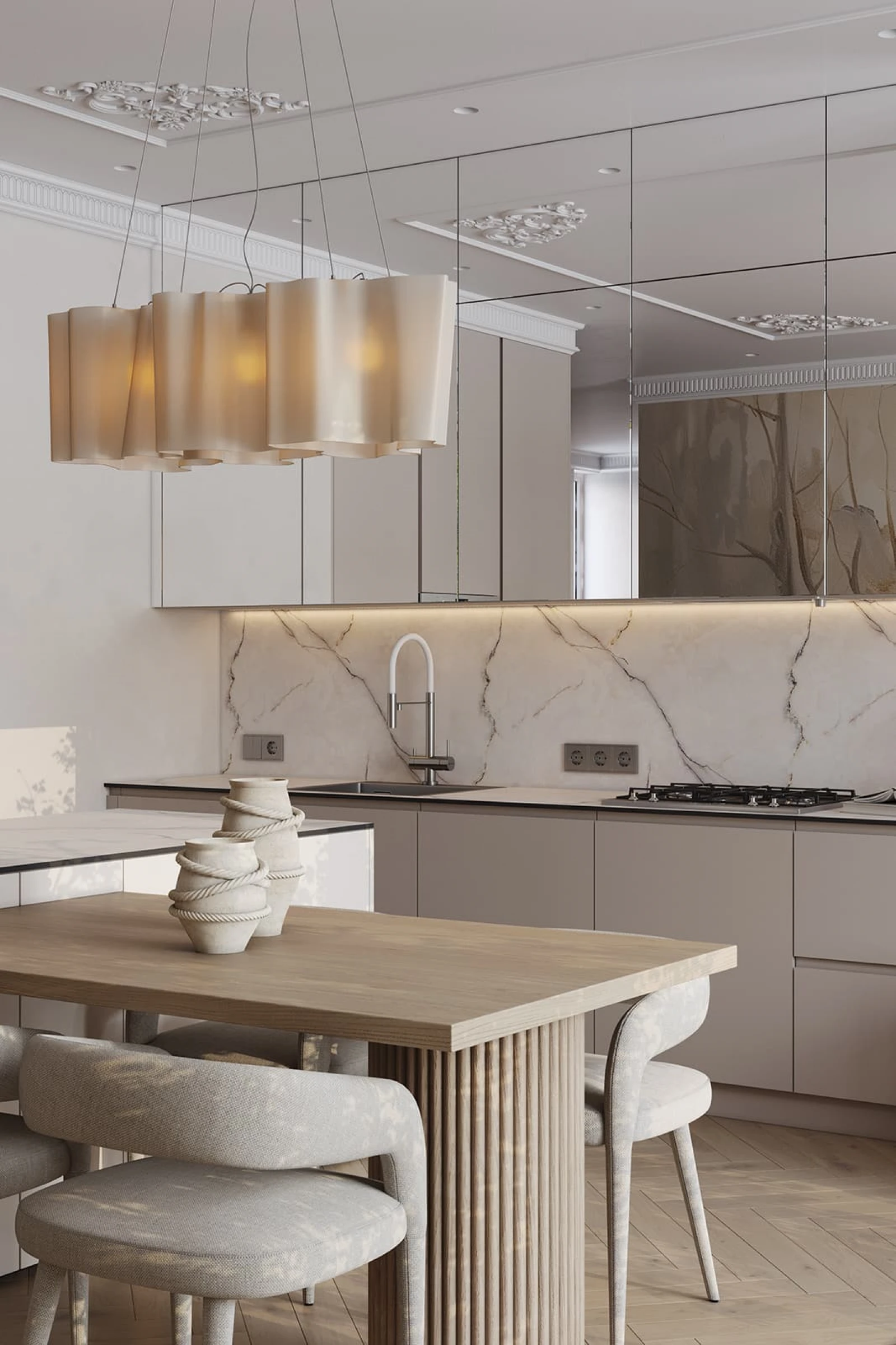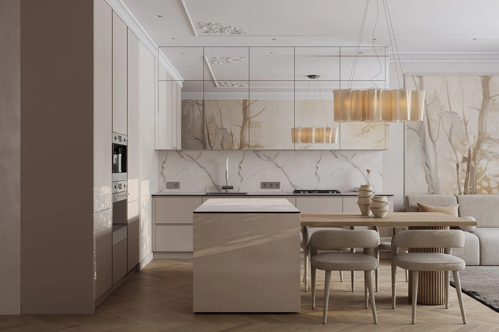 Крашеная МДФ, цвет NCS S 2002-Y50R Матовый / акрил Глянец, цвет Тальк / зеркало,