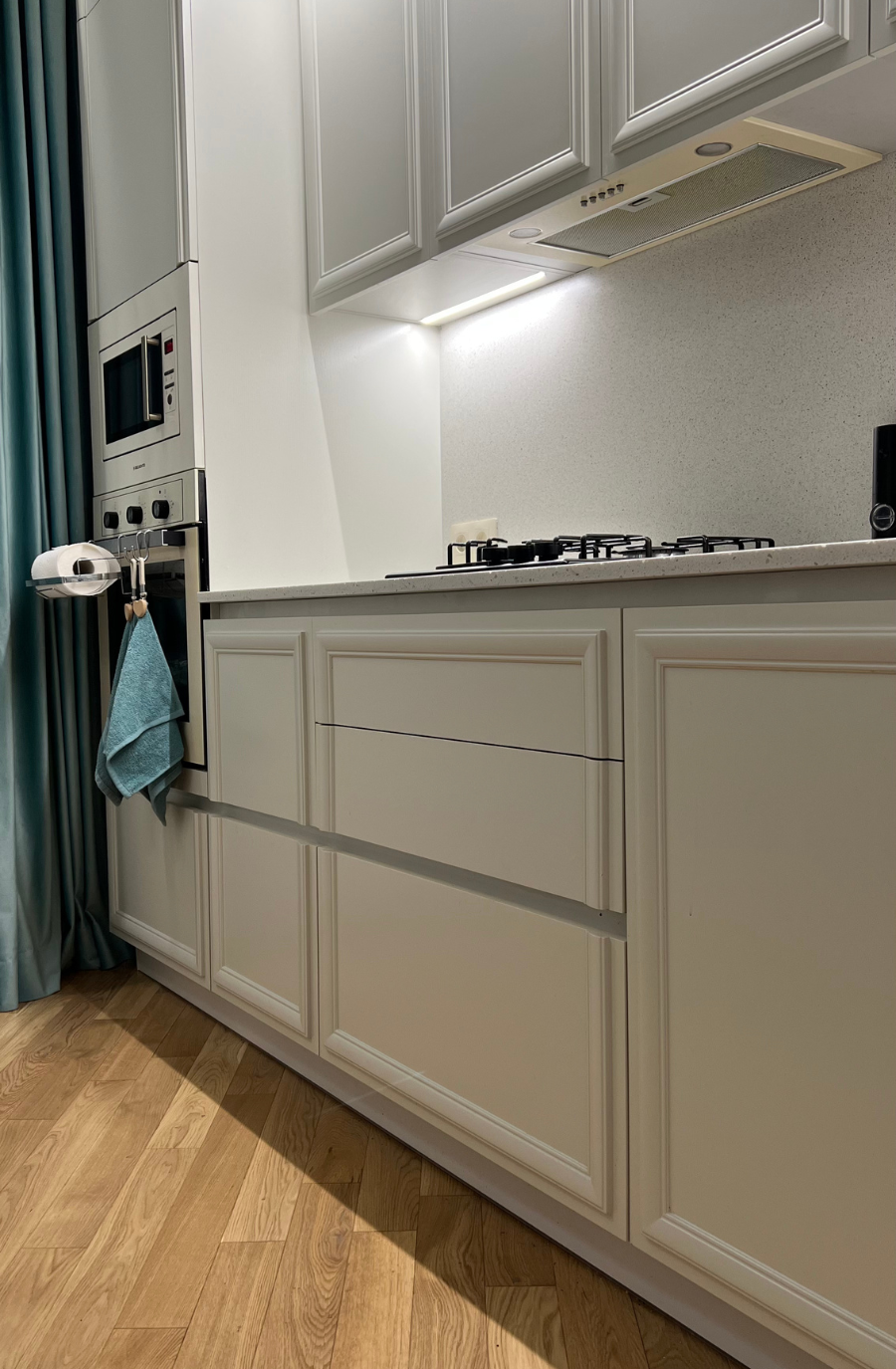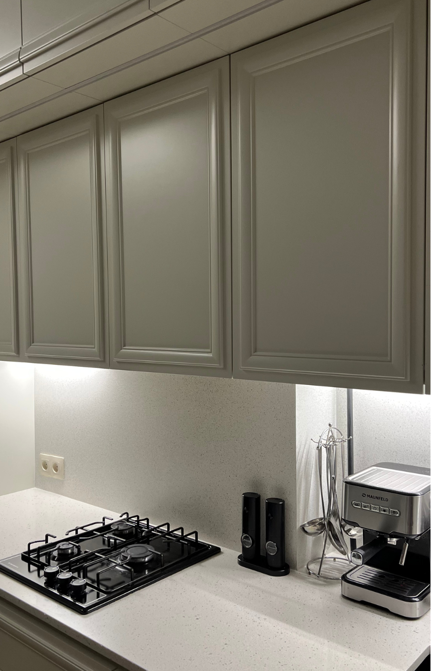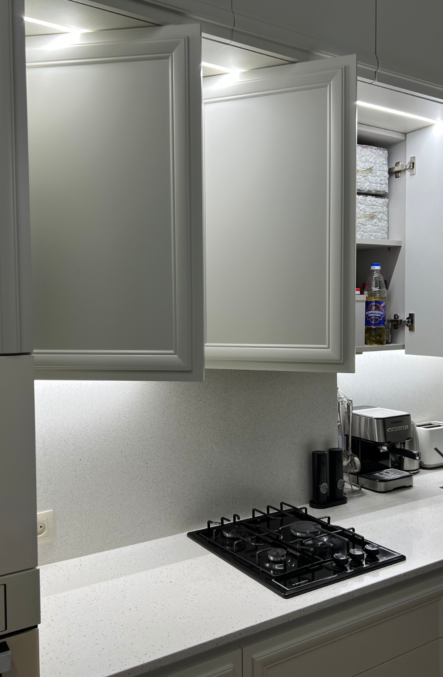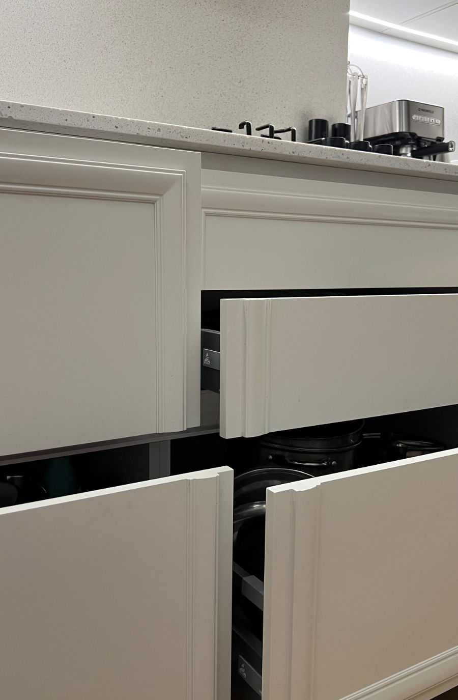 Петли Blum clip top blumotion, все выдвижные- Hettich InnoTech, гола профиль, столешница- кварцевый агломерат