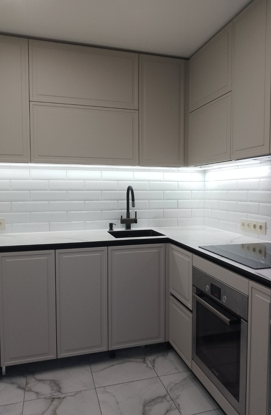 Стильная угловая кухня с LED-подсветкой