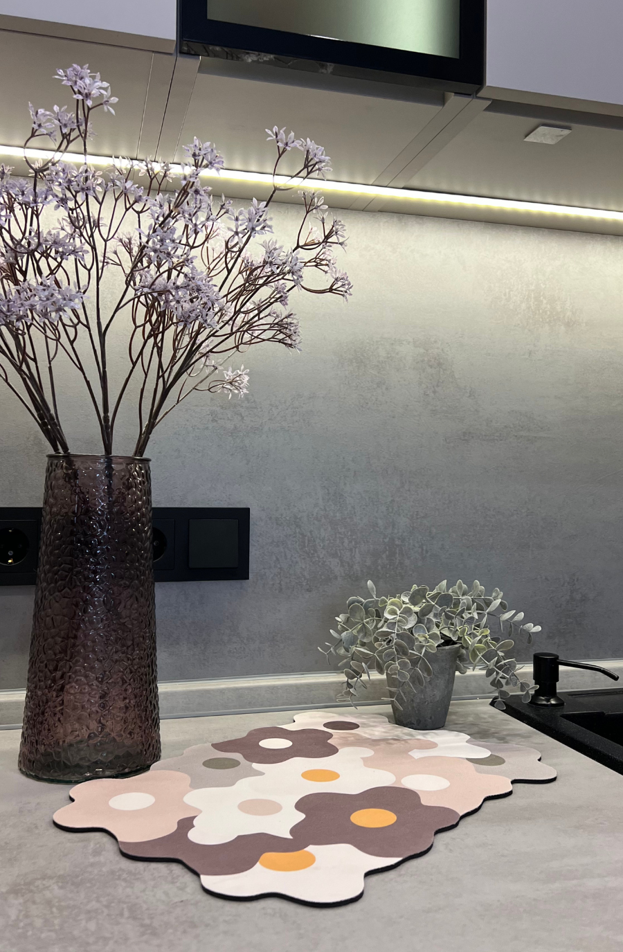 Минималистичная кухня в светлых тонах с древесной текстурой